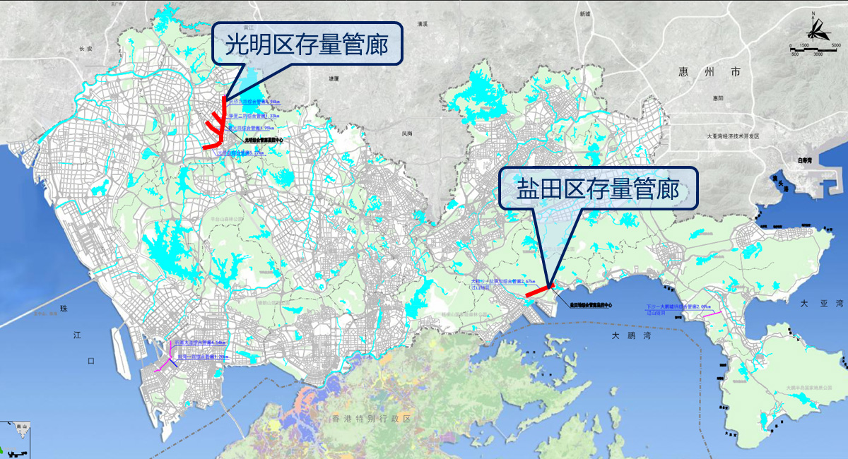 深圳市存量管廊一期项目分别位于深圳市光明区、盐田区,是深圳市首个对现有管廊进行提标改造的项目。光明区改造长度8.59km,盐田区改造长度2.666公里。