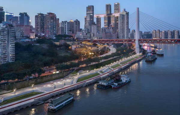 开创性打造了三级立体公共活动空间体系,高度适应消落区特征,是目前重庆主城核心区范围内,唯一实现在175标高全线无障碍贯通、宽度最适宜、通达性最便捷的亲水步道。