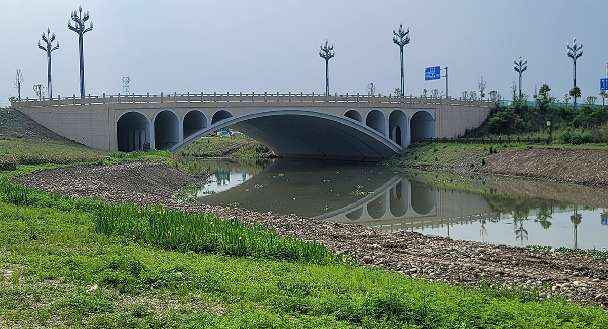 项目位于四川省乐山市高新区,该项目为我公司的PPP项目。该项目中已建成了上跨小铜河和泊滩堰的5座景观桥梁。该项目结合当地文化元素通过桥梁体量、形态和表现手法的变化达到了一桥一景。