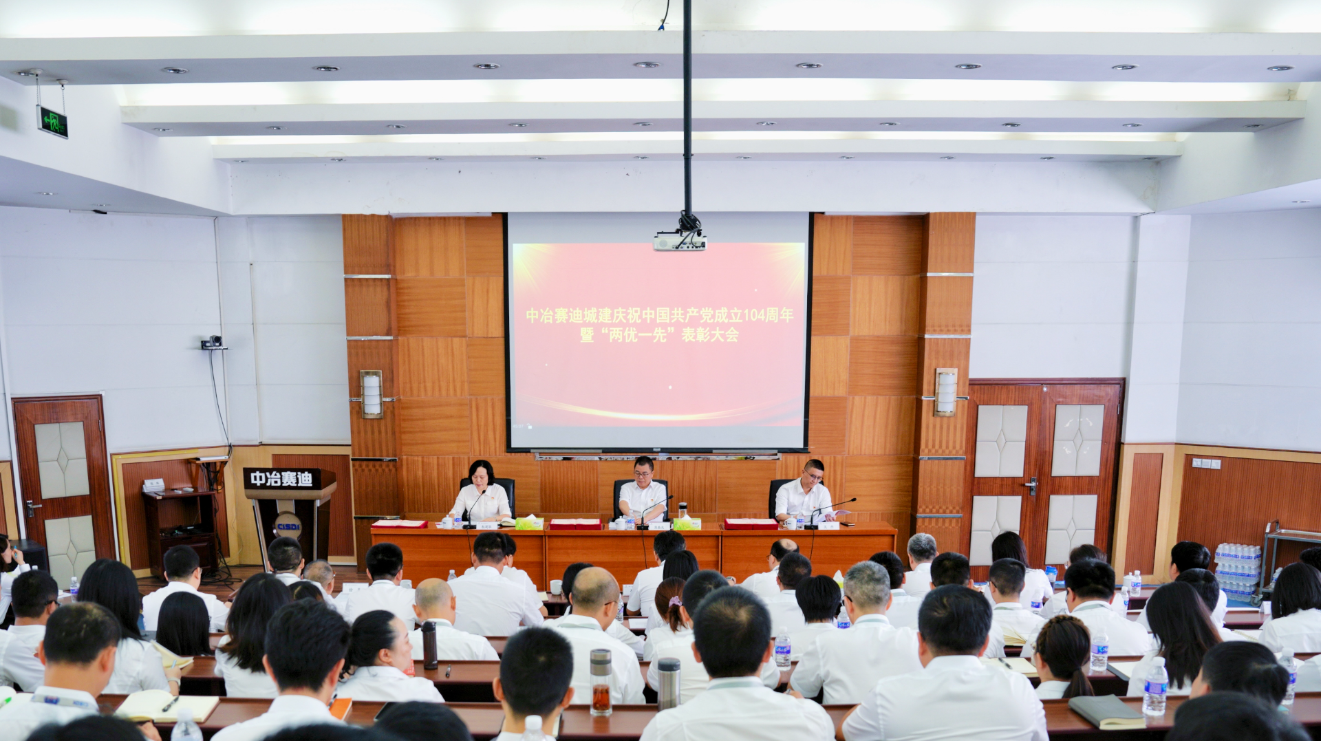 7月4日上午,中冶赛迪城建党委召开庆祝中国共产党成立104周年暨“两优一先”表彰大会。赛迪城建党委书记、董事长张春光出席会议并讲授专题党课,赛迪城建党委副书记、总经理王杰宣读赛迪城建党委表彰决定,公布赛迪城建荣获中冶赛迪党委、重庆市住建委机关党委“两优一先”人员名单,赛迪城建党委委员、副总经理杜建华主持会议。