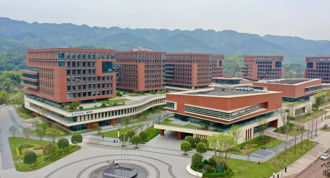 中国科学院重庆科学中心一期工程占地约103亩,总建筑面积约14万平方米,建筑设计以六栋主体建筑及配套服务设施整体围合而成,形成“科学之眼”,象征“数学、物理、化学、天文、地学、生物”6大学科领域。
