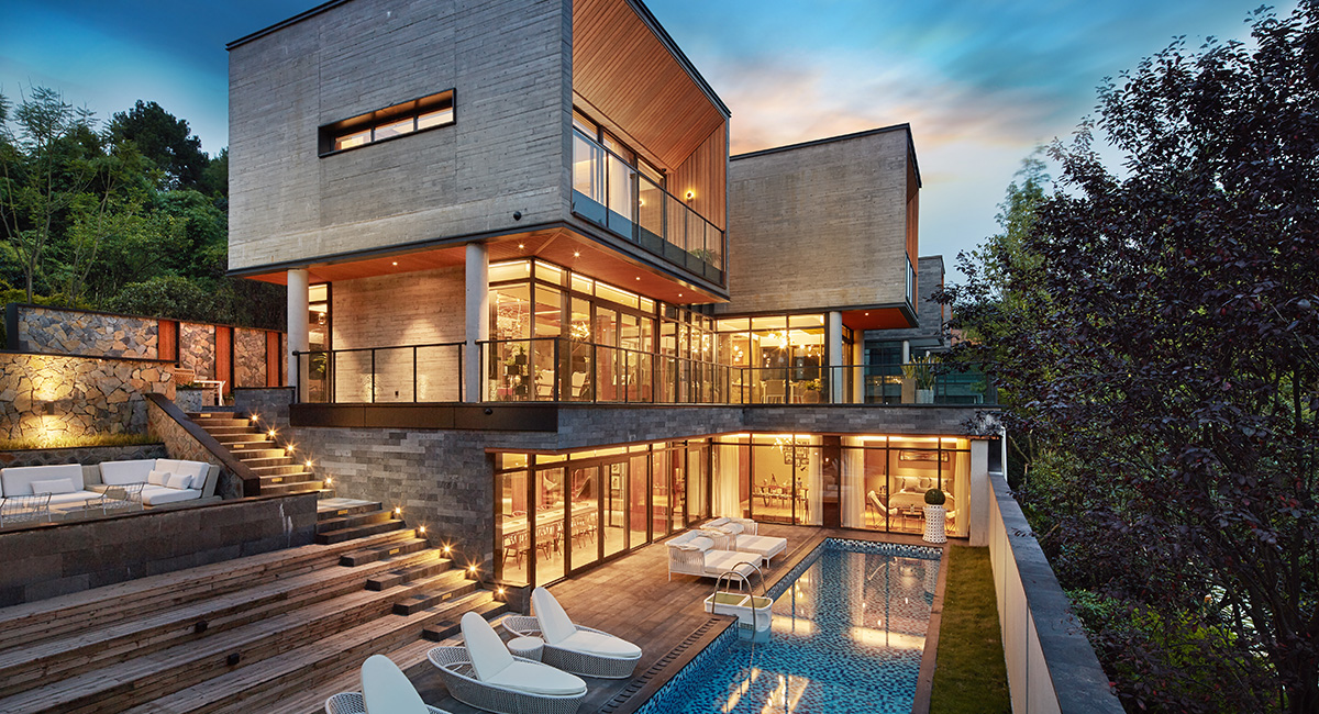 项目地处城市运动休闲旅游胜地——铁山坪森林公园核心位置,业态包含:国际会议中心、五星级酒店、超低密度住宅、风情商业街等。是汇聚高端休闲、商务会议、旅游度假、山居低密度住宅区为一体的复合型山地建筑群落。以松林小镇延续铁山坪铜锣峡千年地域文脉,在行色匆匆的社会生活大背景下以“有质感的简朴和有节制的奢华”为核心诉求,以低技,乡土,低碳,匠意为手段,提供具有生命仪式感的避世居所。更邀约五国大师定制传世大宅叁拾壹峰,为极少数峰层人群于城市之巅打造一座纯独栋艺术行宫,容积率仅0.22,只此31席。栋栋独一无二,皆为珍稀藏品。