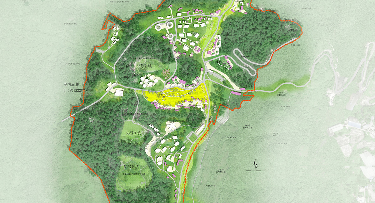 中梁云峰总体策划范围约6700亩(447公顷),首开区范围82.2公顷(1233亩),其中建设用地18.2公顷(273亩)。策划以矿山生态修复为基底,以发展绿色可持续经济为目标,聚焦创新型数字产业、自然环境教育、休闲旅游三大产业方向,打造集第二总部、文创办公、自然教育、休闲旅游等功能为一体的中梁山·云岭智谷,整体拟打造为消隐于森林的低密度智慧体验基地。