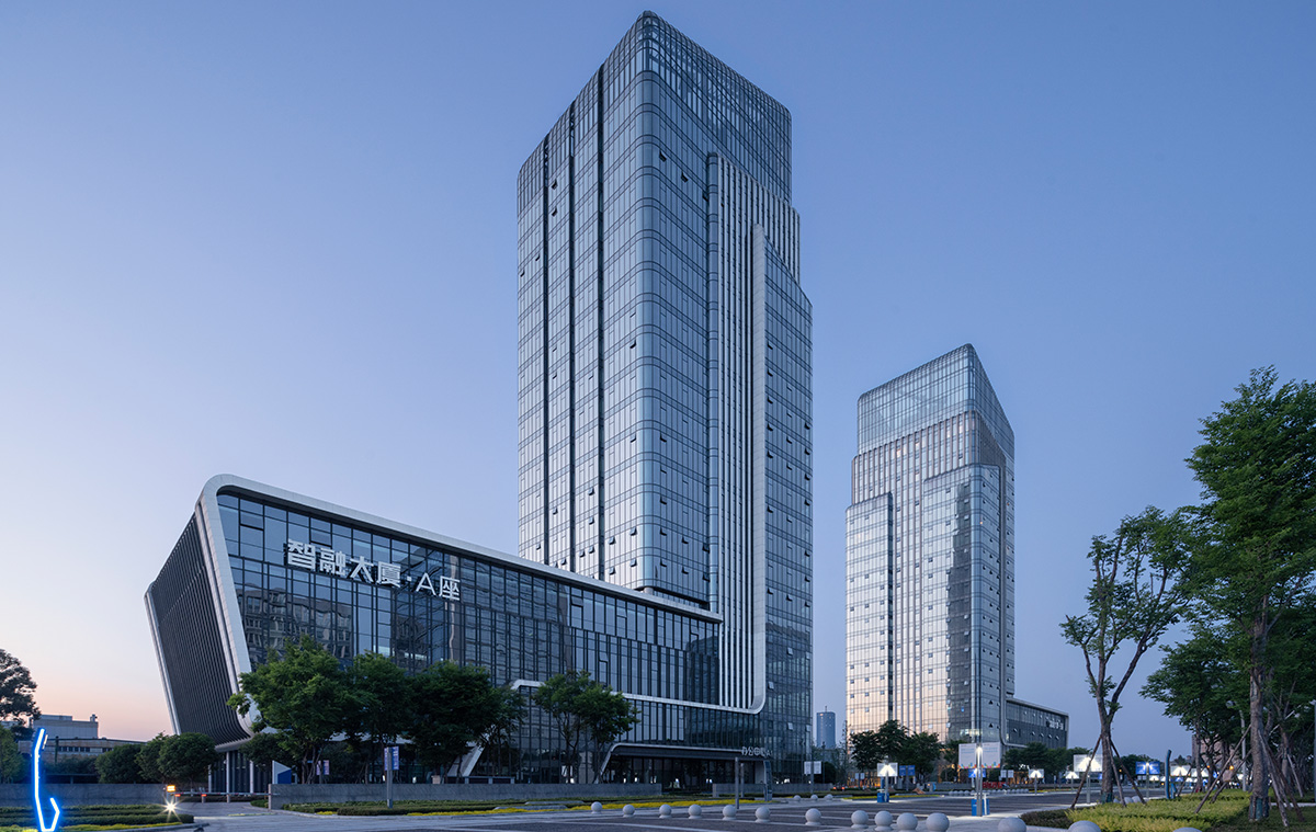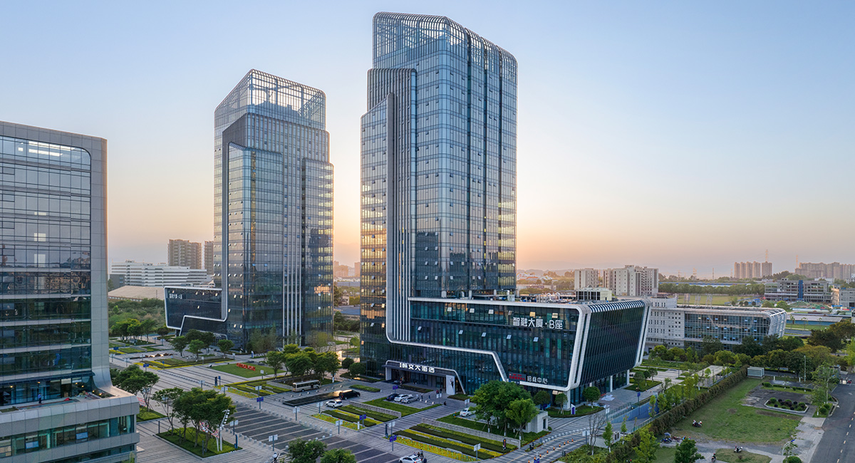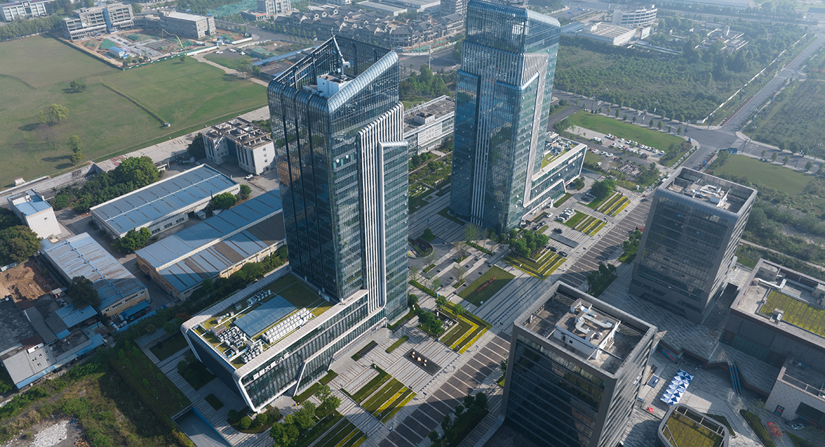项目位于乐山市高新区,是区域内地标建筑。建筑采用双塔的形式,旨在塑造城市门户形象。建筑风格追寻一种简洁大气的基调,通过体量的组合,形成虚与实对比。