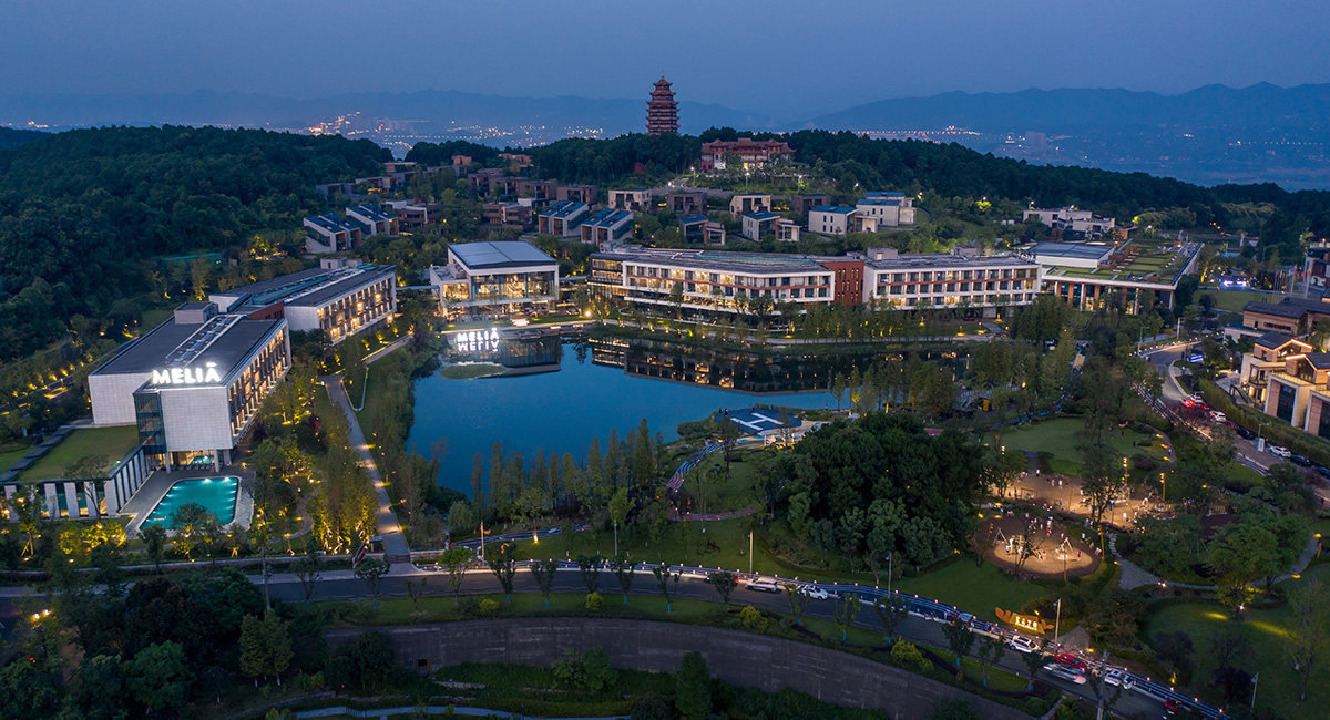是集客房、会议、餐饮、办公等功能为一体的综合性项目,拥有239间客房,3个餐厅和会议中心。 本项目用地总面积103702 ㎡,酒店及会议中心总建筑面积: 61491.09㎡ 。 本项目以环境为核心展开设计,酒店与规划区内各项目间的相互依存、相互呼应,达到最大的社会效益与经济效益。