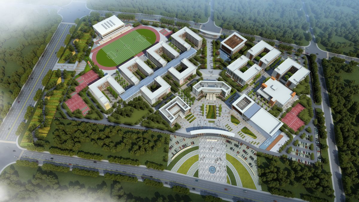项目位于四川省简阳市,总投资9.2亿元,占地385亩,有各种功能楼14栋。设计对标北上广深最新校园设计标准与趋势,