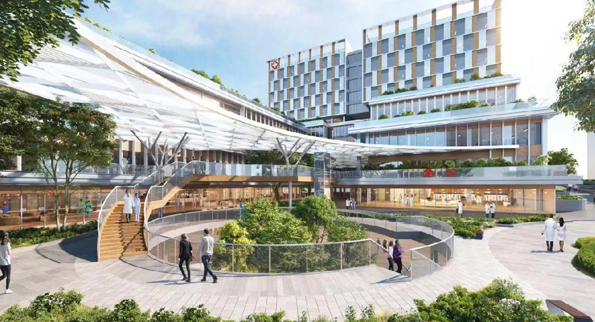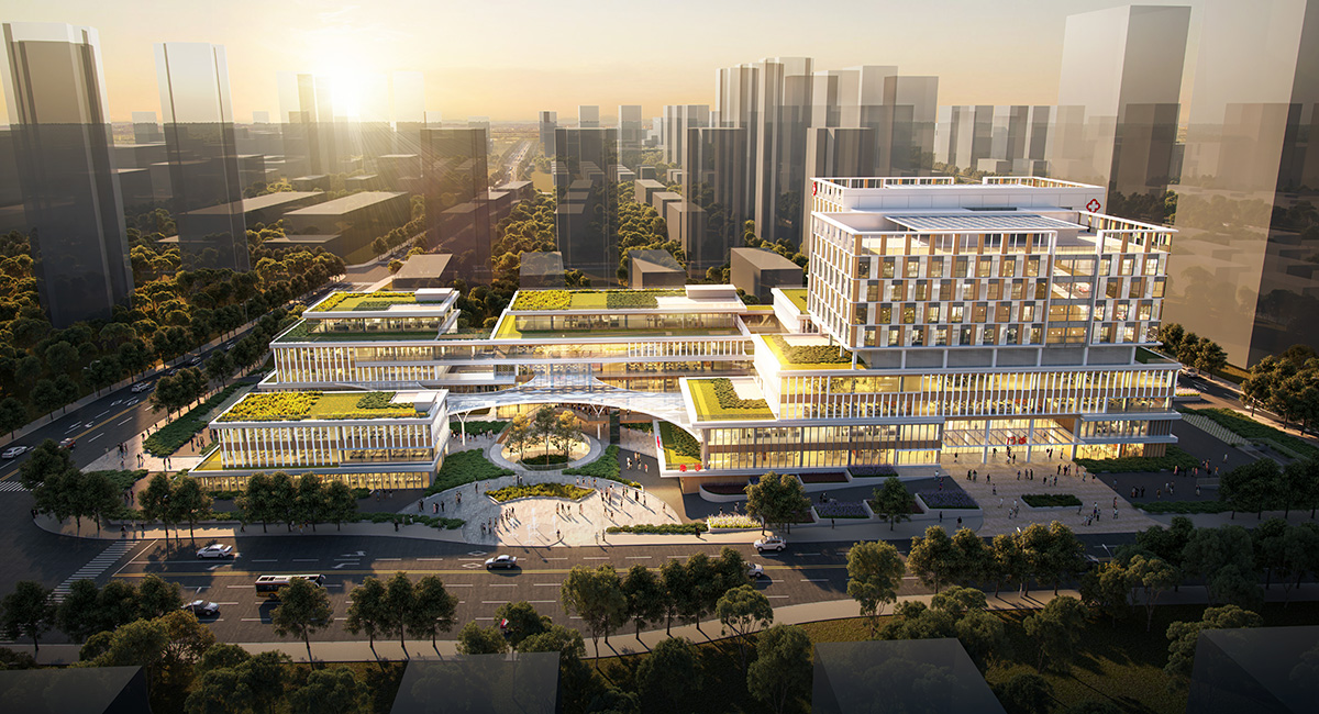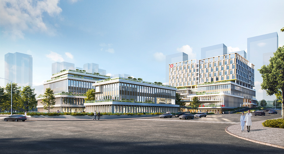 地上总建筑面积暂定为49200平方米,规划床位数为400床。方案结合山城重庆特有的山谷、梯田景观,提出了“健康绿谷 疗愈梯田”设计主题,使建筑融入自然,形成多元疗愈空间,为城市注入活力。设计体现出新时代医疗建筑对自然疗愈环境的关注,亦是对生命全周期大健康理念完美诠释。设计注重疏朗和充足的半室外空间打造,尊重与城市空间交融关系,巧妙借用场地高差合理的处理门诊、传染病楼、行政楼的出入口空间,错动的住院楼高低搭配,避免了对周边社区的影响。