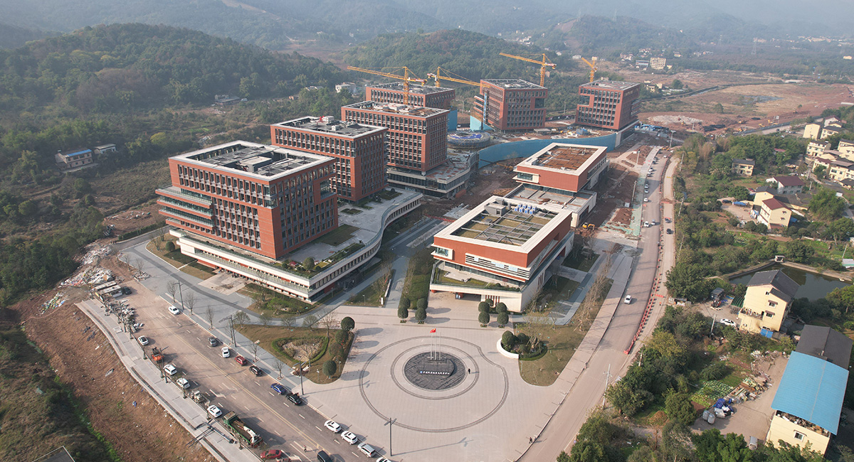 中国科学院重庆科学中心项目,总建筑面积14万平方米,首次实现预制空腔柱+预应力混凝土空心板技术体系大规模应用,各单体建筑装配率达到65%以上。