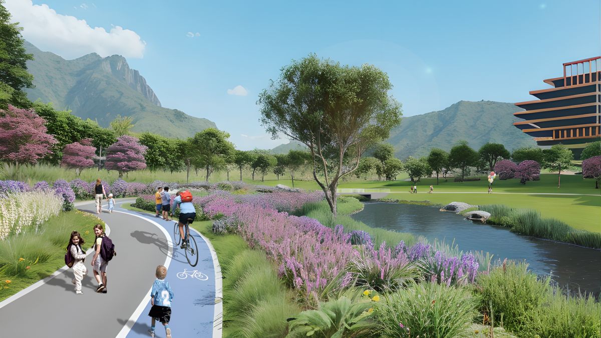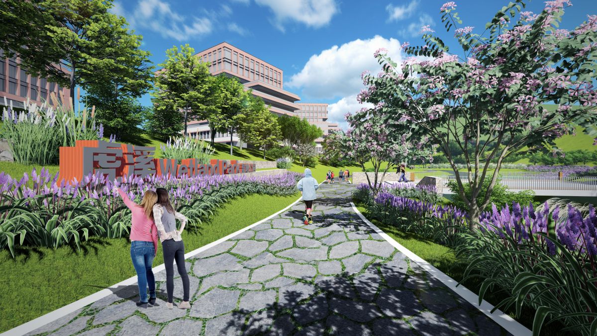项目具有良好的自然生态基底,同时毗邻科学中心、重大超瞬态等重点科研项目。设计尊重现状,采用了自然生态的水工做法和水环境处理措施,为周边业态创造了良好的环境配套,打造了一条长度2km的“亲水生态后花园”,成为高新区展示自然生态形象的新窗口。