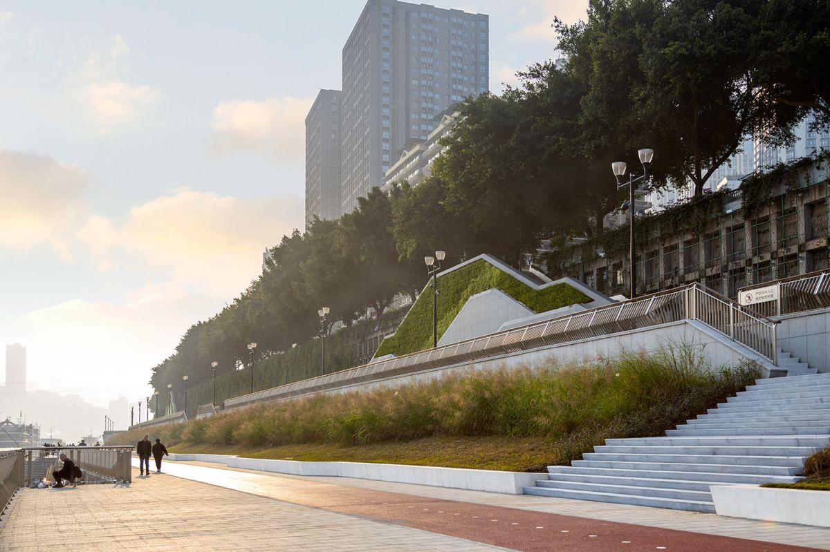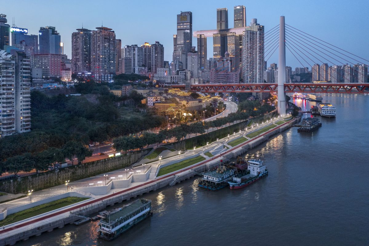 开创性打造了三级立体公共活动空间体系,高度适应消落区特征,是目前重庆主城核心区范围内,唯一实现在175标高全线无障碍贯通、宽度最适宜、通达性最便捷的亲水步道,是重庆市两江四岸建设中滨水步道的打造样板。