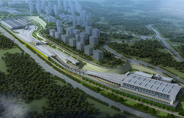 唐家沱车辆段位于海尔路东南侧。用地东西宽约430m,南北长约930m。车辆段场地内自然地势北高南低,场地中部南北方向发育一条"V"型冲沟,冲击沟深度约为70~100m。