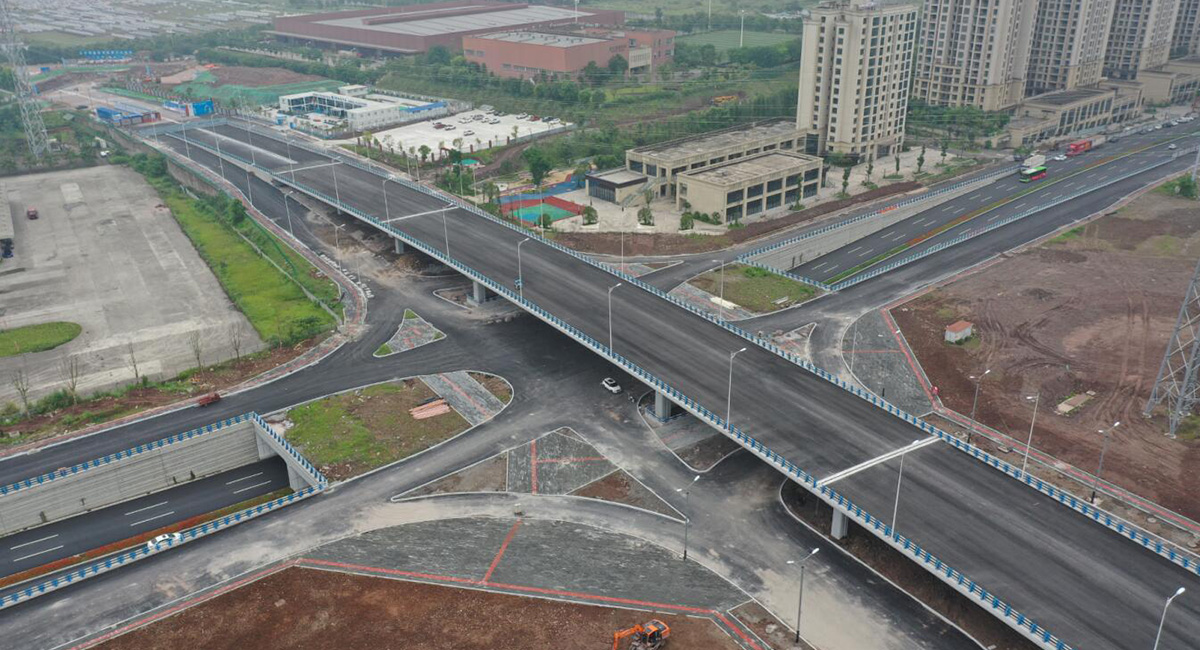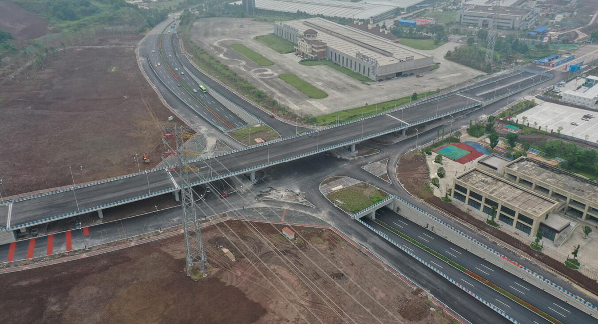项目为两江新区龙兴片区重要的交通干线,包含道路主线及多条相交支线、天堡寨全互通立交、石香隧道、两江大道菱形立交及3座桥梁。工程位于两江新区龙兴片区,是连接六纵线和庙复路之间的城市主干路,属于重庆市重点工程道路等级为城市主干路,天宝寨全互通立交、天宝寨隧道、两江大道菱形立交及3座桥梁和隧道1座,其隧道正上方6个工厂在项目实施前建成投产,工厂内含精密仪器,震动控制标准极高,隧道无法按正常施工方法施工,设计及施工难度高。中冶赛迪设计的本项目已经荣获中国勘察设计协会、中国图学学会、重庆市勘察设计协会、重庆市建筑业协会等颁发的多项奖项。