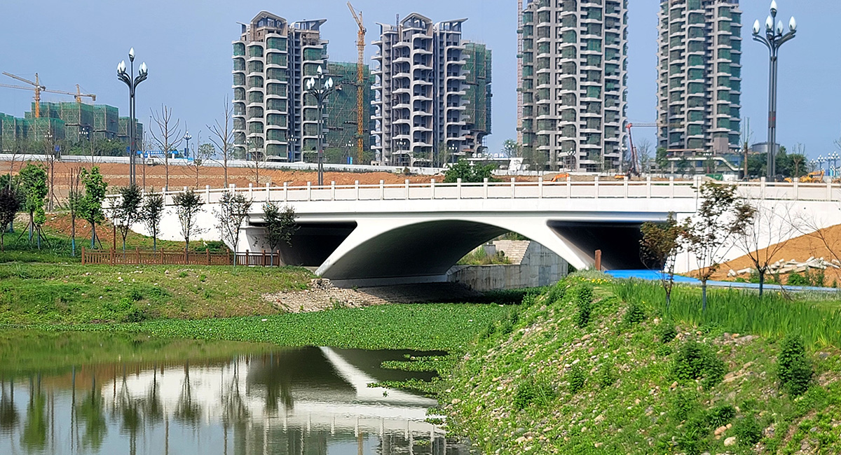 项目位于四川省乐山市高新区,该项目为我公司的PPP项目。该项目中已建成了上跨小铜河和泊滩堰的5座景观桥梁。该项目结合当地文化元素通过桥梁体量、形态和表现手法的变化达到了一桥一景。