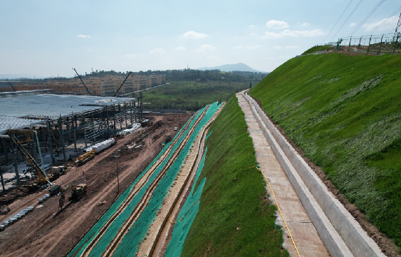 土地整治面积约为37万平方米,地块海拔3270~3400米,高差约130米,最大挖方高度约53米,最大填方高度约36米,采用分层强夯+排水盲沟进行地基处理,有效控制了工后沉降,满足拟建建构筑物对地基的要求。
