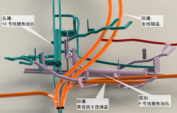项目包含曾家岩嘉陵江大桥、南延伸段隧道、北延伸段隧道等,总长5.5km。涉及轨道1号线、9号线、10号线、环线、2号线等6条线路。