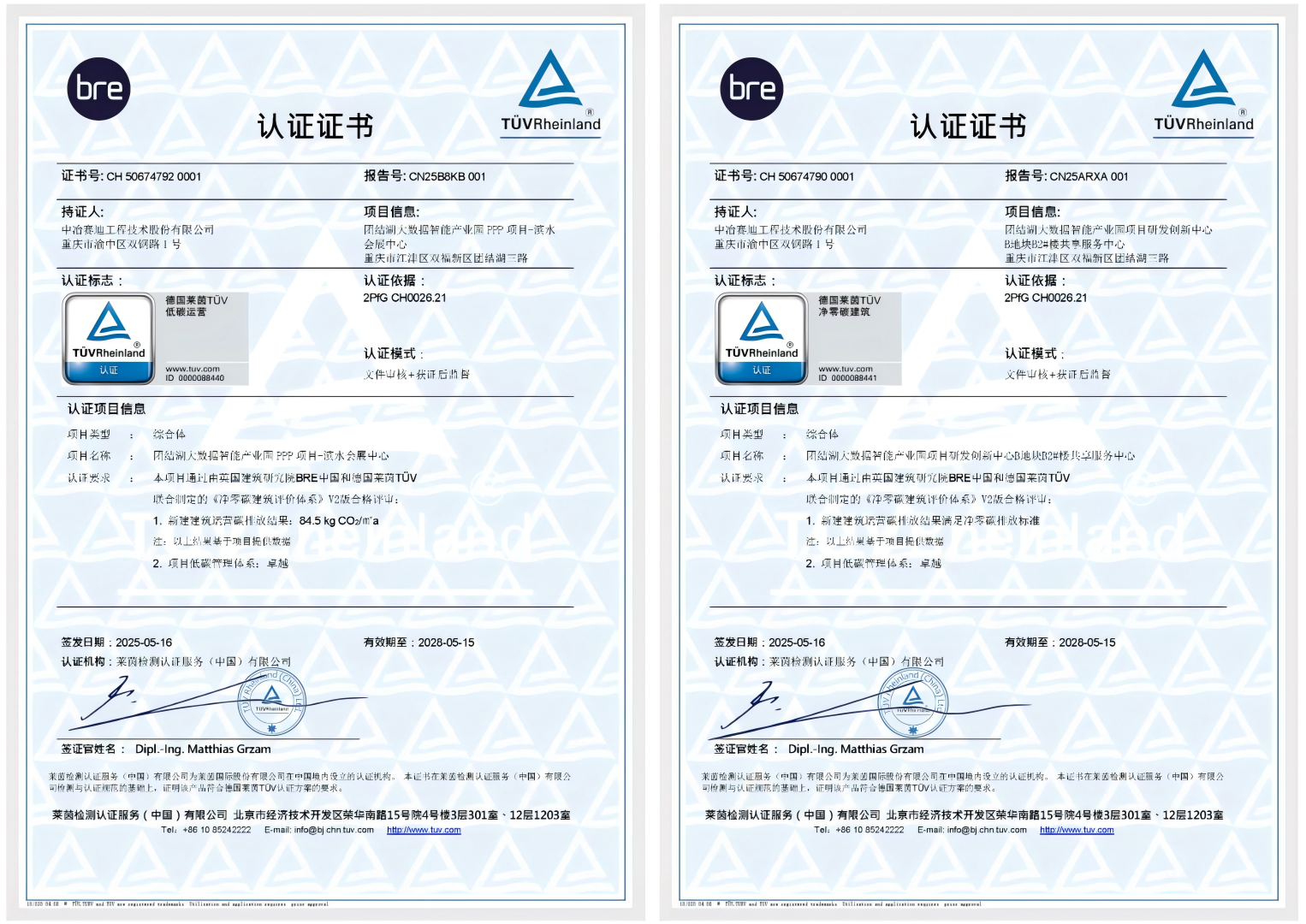 净零碳建筑、净零碳园区评价体系由德国莱茵TÜV与英国建筑研究院BRE联合制定,并在中国国家认证认可监督管理委员会(CNCA)备案,是国内建筑领域先进且权威的低碳化认证体系。