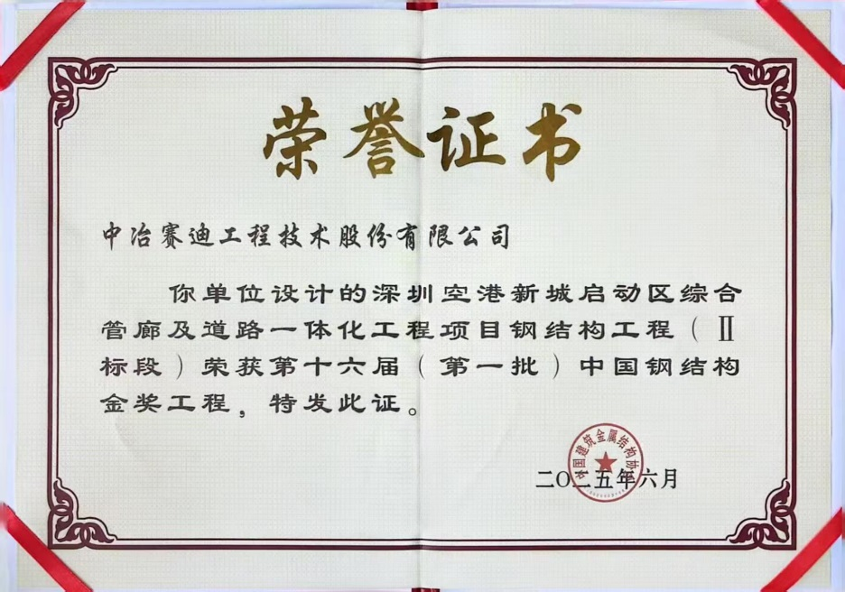 近日,中冶赛迪设计的深圳空港新城启动区综合管廊及道路一体化工程项目中的深圳展云路景观桥(简称“展云桥”)工程项目,荣获中国建筑钢结构行业工程质量最高荣誉奖—中国钢结构金奖。此前,该项目已先后斩获重庆市优秀勘察设计奖、广东省詹天佑故乡杯奖和上海金钢奖特等奖。