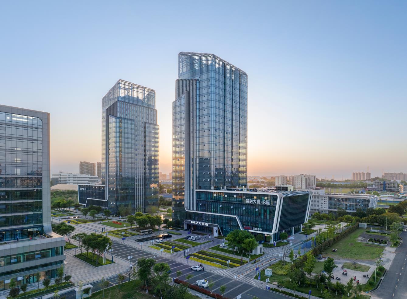 本项目建筑采用双塔形式,风格简洁大气,旨在塑造城市门户形象。建筑外立面与乐山当地文化呼应,结构设计采用内置对拉螺杆钢板组合剪力墙等多项自主研发技术专利,提高了抗震性能和质量,节约建造工期。建筑施工采用全钢主体结构+玻璃幕墙+轻质内隔墙+全装修+管线分离+BIM技术全过程应用技术路线,建筑装配率97%,主体结构、围护结构、内隔墙等全装配,部分采用装配化装修。