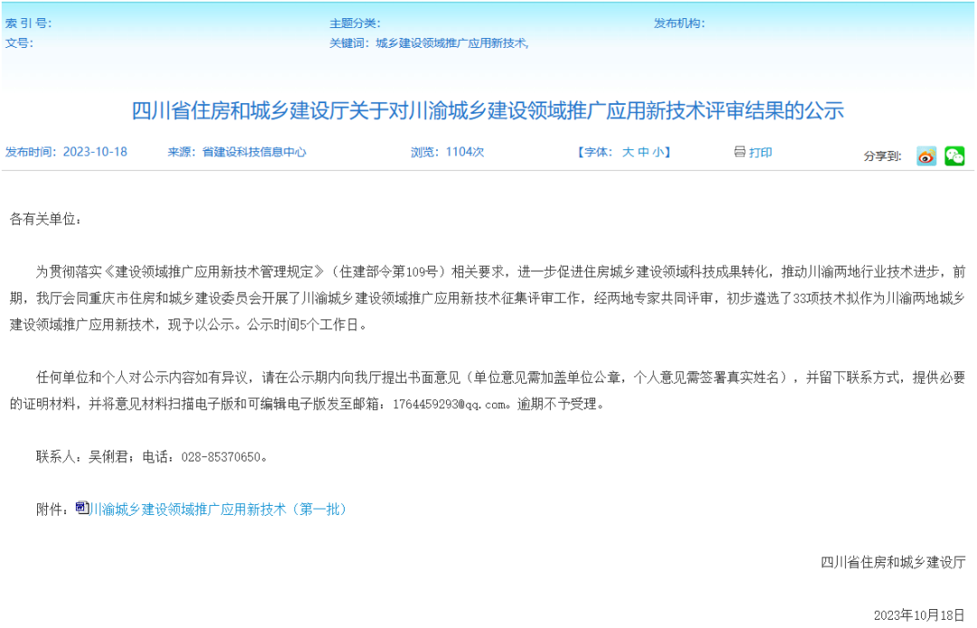 中冶赛迪城建聚焦市场需求,加大科技投入,近半年科研项目申报和技术应用收获新成果,主要包括:4项省部级科研项目获批立项、2项成果入选川渝城乡建设领域推广应用新技术(第一批)清单、多项成果进行项目应用。